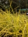 Dekorative gule blade i tuer og brune aks i juni - juli.